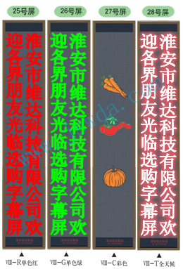 v型系列:高1.74米(192點(diǎn)),寬0.20米(16點(diǎn)),單行顯示,常用字?jǐn)?shù)不超過14個(gè)字. |